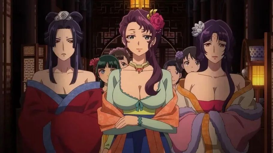 There were many reasons I was automatically hooked on The Apothecary Diaries: a capable young woman for a protagonist. Mysteries that don’t feel predictable or overdone. Crisp, colorful animation. A cast of majority female characters with their own moral complexities and a variety of roles to play. As a sex worker, however, my favorite aspect of The Apothecary Diaries is the nuanced depiction of sex work. From the Verdigris House women to the royal concubines, the series treats the characters engaged in sex work with care, subverting many of the harmful tropes and expectations that other popular media from around the world often fall into.Â